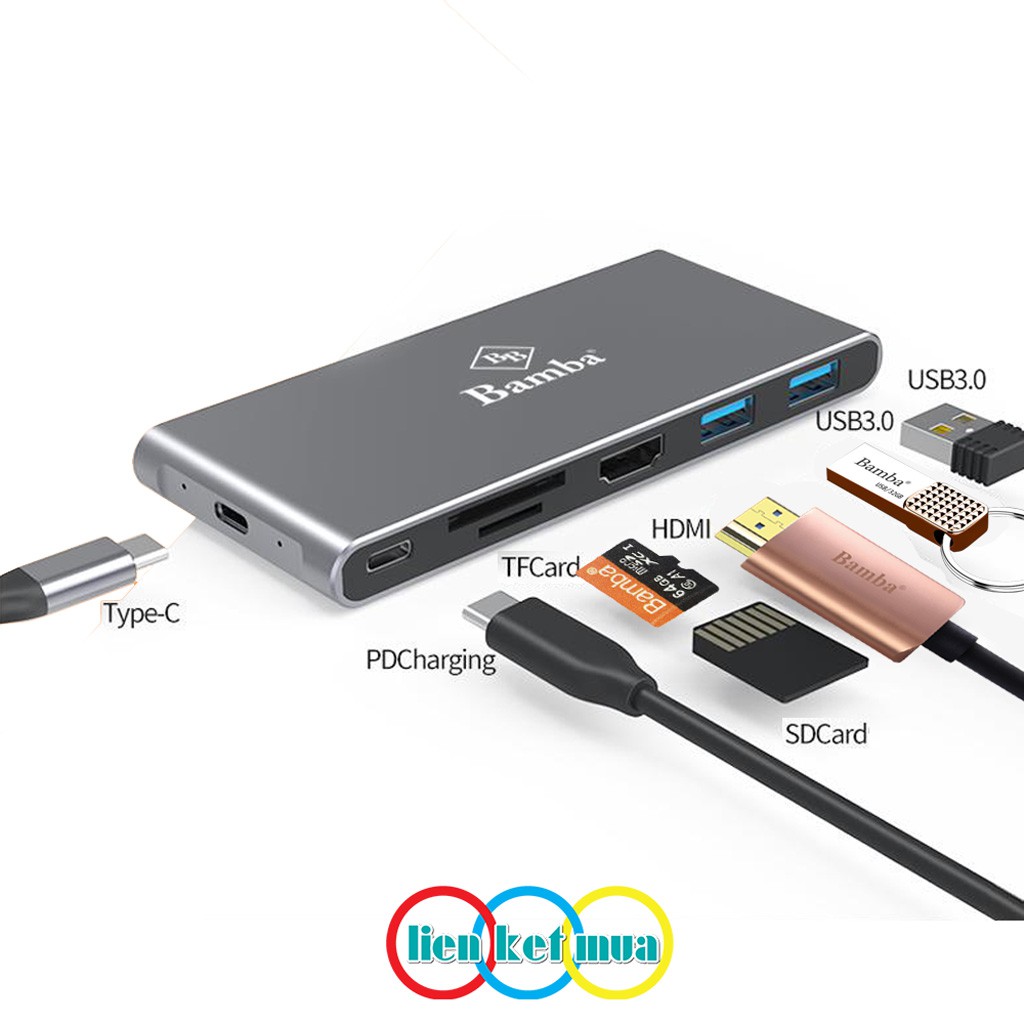 Máy tính & Laptop > Phụ Kiện Máy Tính > Bộ chia cổng USB & Đọc thẻ nhớ || Box SSD M2(NGFF) tích hợp 2 USB 3.0+HDMI+2 ĐỌC THẺ+USB C Ra USB C màu xám vỏ nhômCòn hàng