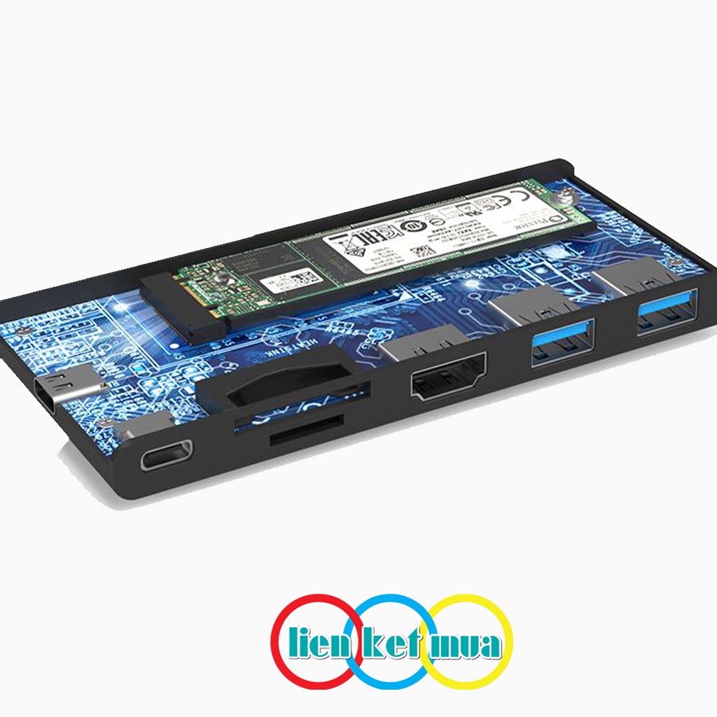 Box SSD M2(NGFF) tích hợp 2 USB 3.0+HDMI+2 ĐỌC THẺ+USB C Ra USB C màu xám vỏ nhôm