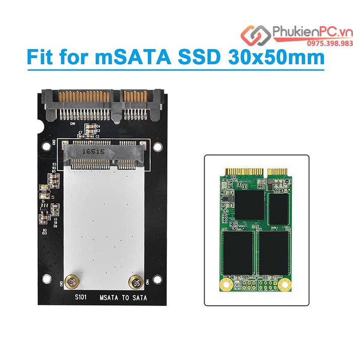 Sử dụng cho các loại ổ cứng SSD mSATA trên thị trường hiện nay. Full Size 50x30mm hoặc 25x30mm