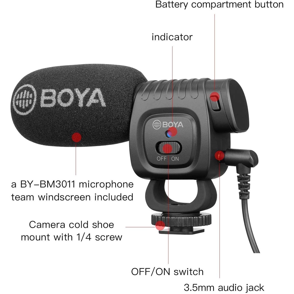 ◾ BOYA BY-BM3011 là micro ngưng tụ định hướng có thiết kế nhỏ gọn và chắc chắn, có thể cải thiện chất lượng âm thanh của video trên cơ sở của micrô tích hợp, sản phẩm có sẵn cả cáp TRS và cáp đầu ra TRRS, vì vậy nó có thể được sử dụng cho điện thoại thông minh, máy tính bảng, máy ảnh DSLR, máy quay phim, máy tính, máy ghi âm, ...◾ Với đầu mic ngưng tụ định hướng, BY-BM3011 sẽ giảm tiếng ồn xung quanh trong khi ghi lại âm thanh với độ rõ cao hơn. Nó cũng có tính năng gắn kết chống sốc có thể được gắn trên máy ảnh hoặc boompole