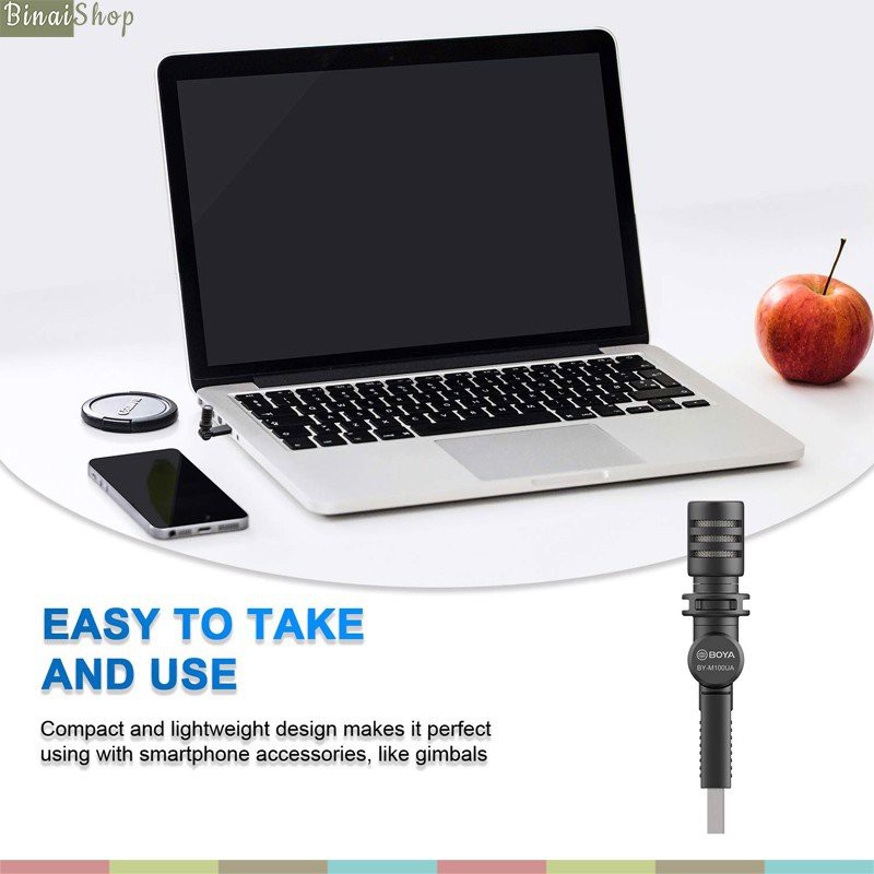 Boya BY-M100UA - Micro Condenser USB Nhỏ Gọn Thu Âm Đa Hướng, Sử Dụng Cho Máy Tính Windows, Mac