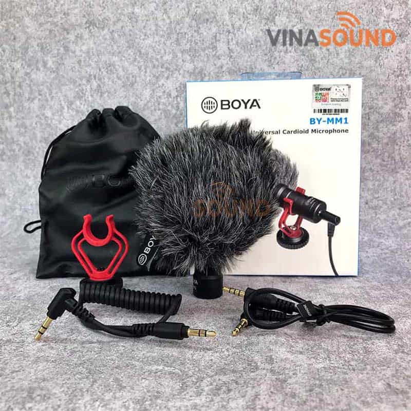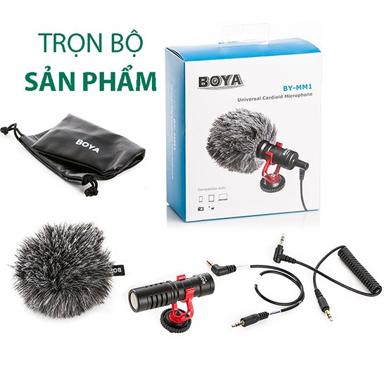 - Bộ sản phẩm đầy đủ: 1 x Lọc âm , 1 x Micro BOYA BY-MM1, 1 x mount, 1 x túi đựng, 1x jack âm thanh 3.5 mm TRS (Cho máy ảnh, máy quay phim, ghi âm thanh và các âm thanh khác/video thiết bị ghi âm.), 1x jack âm thanh 3.5 mm TRRS (Cho IOS và Android Điện Thoại Thông Minh, máy tính bảng hoặc Mac).