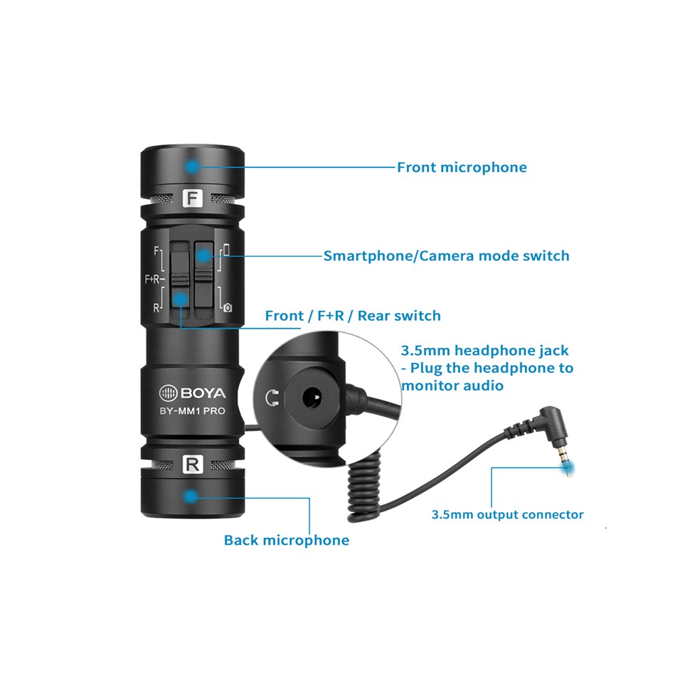 Thiết Bị Âm Thanh > Micro thu âm || BOYA BY-MM1 PRO - Hàng Chính Hãng - Micro Shotgun 2 đầu thu âm cổng 3.5mm dành cho Smartphone/DSLRs/PCCòn hàng