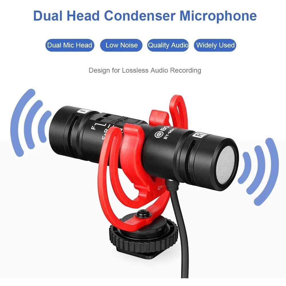 BOYA BY-MM1 PRO - Hàng Chính Hãng - Micro Shotgun 2 đầu thu âm cổng 3.5mm dành cho Smartphone/DSLRs/PC