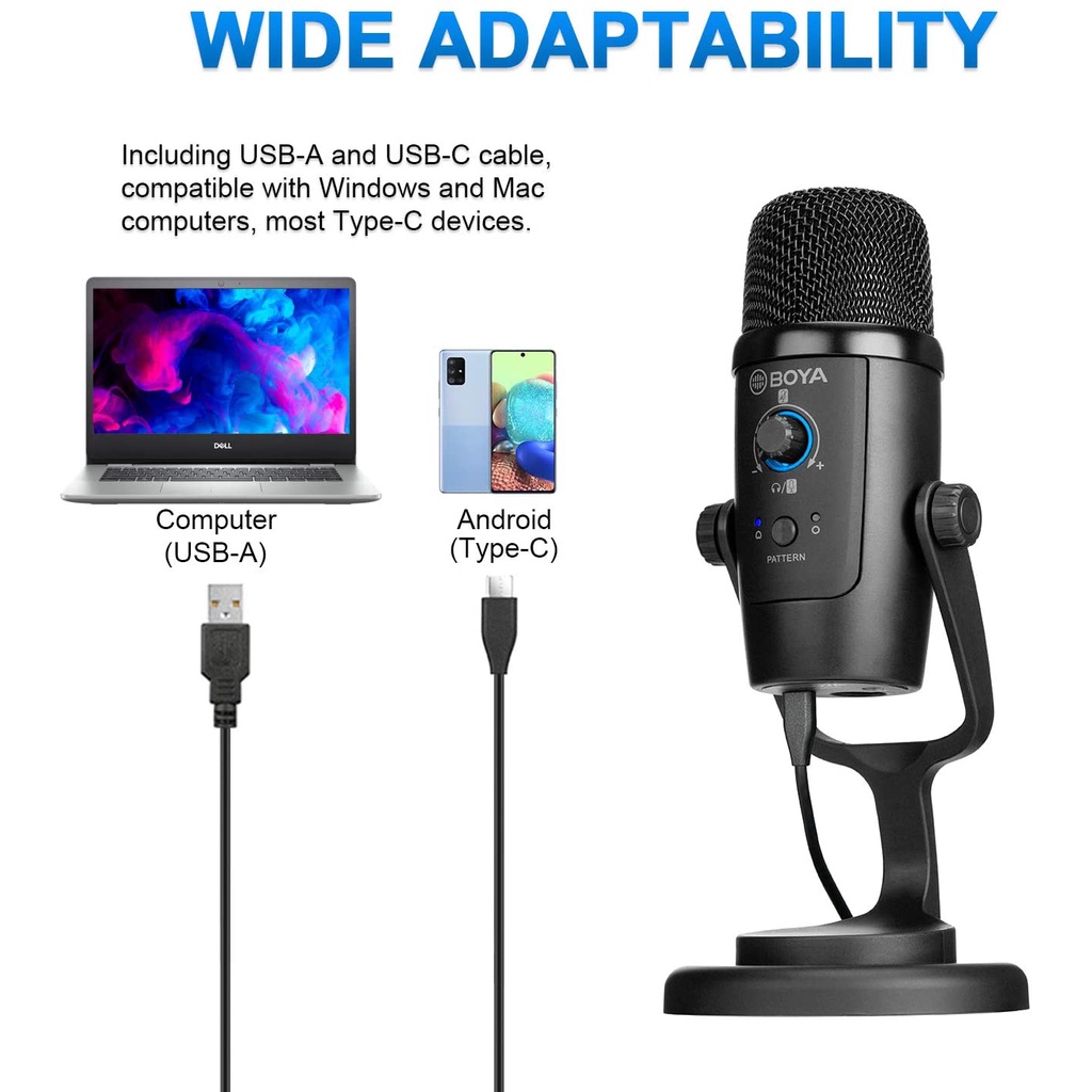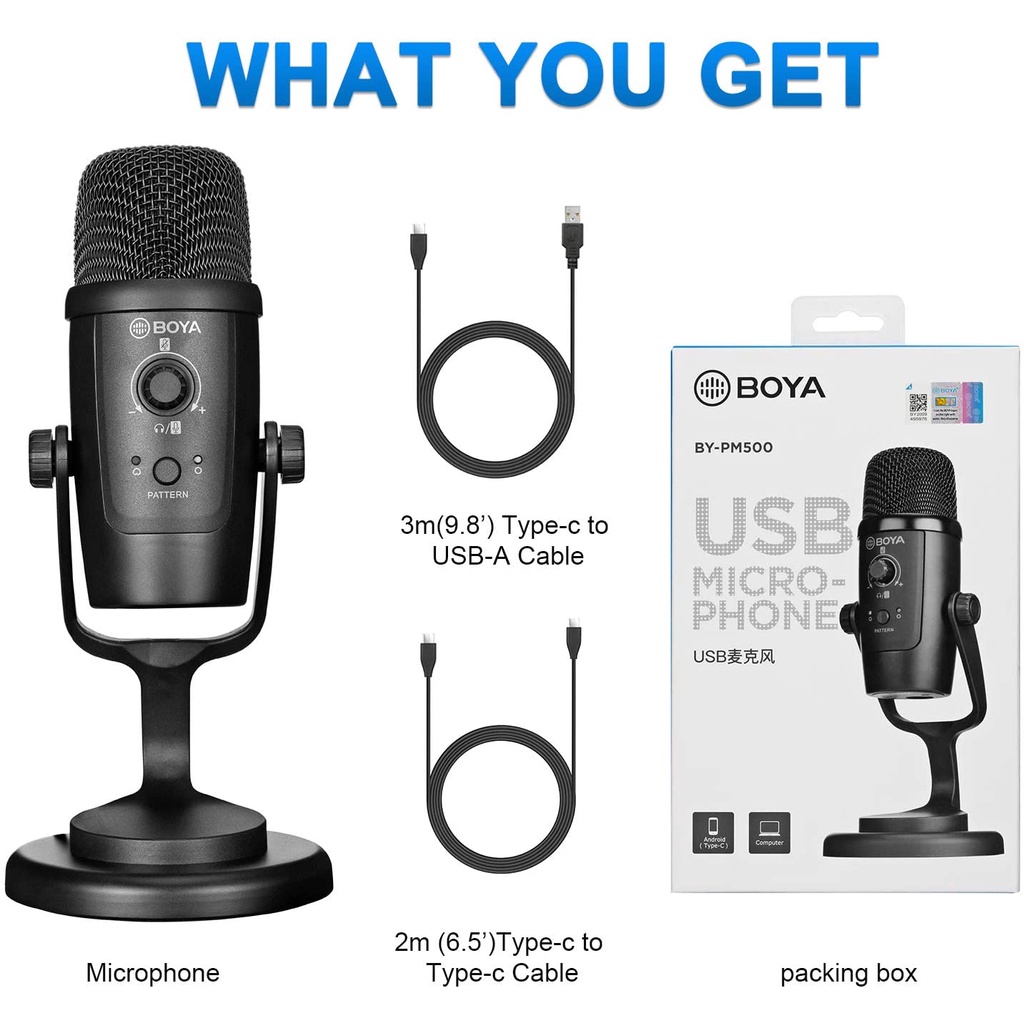 Thiết Bị Âm Thanh > Micro thu âm || BOYA BY-PM500 - Hàng Chính Hãng - Mic thu âm dành cho Điện thoại Android cổng Type-C và Máy tính cổng USBCòn hàng