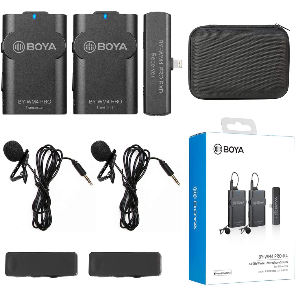 Thiết Bị Âm Thanh > Micro thu âm || BOYA BY-WM4 Pro K4 - Mic thu âm không dây cổng Lightning dành cho Thiết bị iOS thu cho 2 ngườiCòn hàng