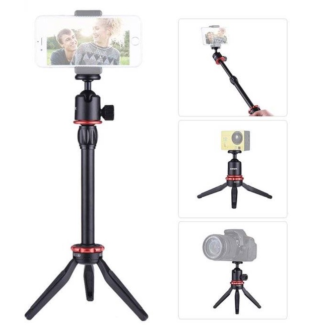 ◾ Nó đi kèm với một đầu bi nhỏ, chân máy mini và một ống nối dài. Đầu bi nhỏ giúp bạn thuận tiện lắp máy vào đúng vị trí để có những shoot hình đẹp nhất. Chân máy mini được thiết kế với khả năng điều chỉnh góc giúp bạn có thể thay đổi góc của chân một cách dễ dàng. Phần tốt nhất là ống mở rộng giúp cho chân máy mini này có thể sử dụng ở các độ cao khác nhau tùy theo yêu cầu cụ thể của bạn.