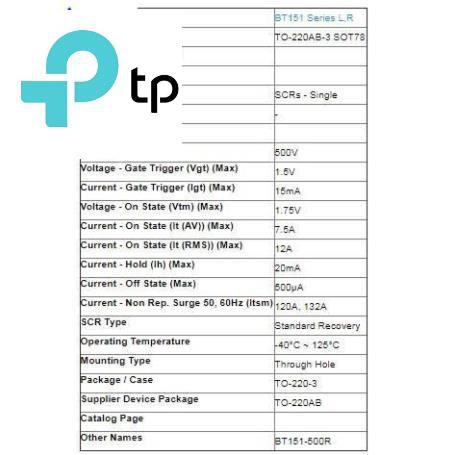 BT151-500R TO220 THYRISTOR 12A 500V(1 Chiếc)