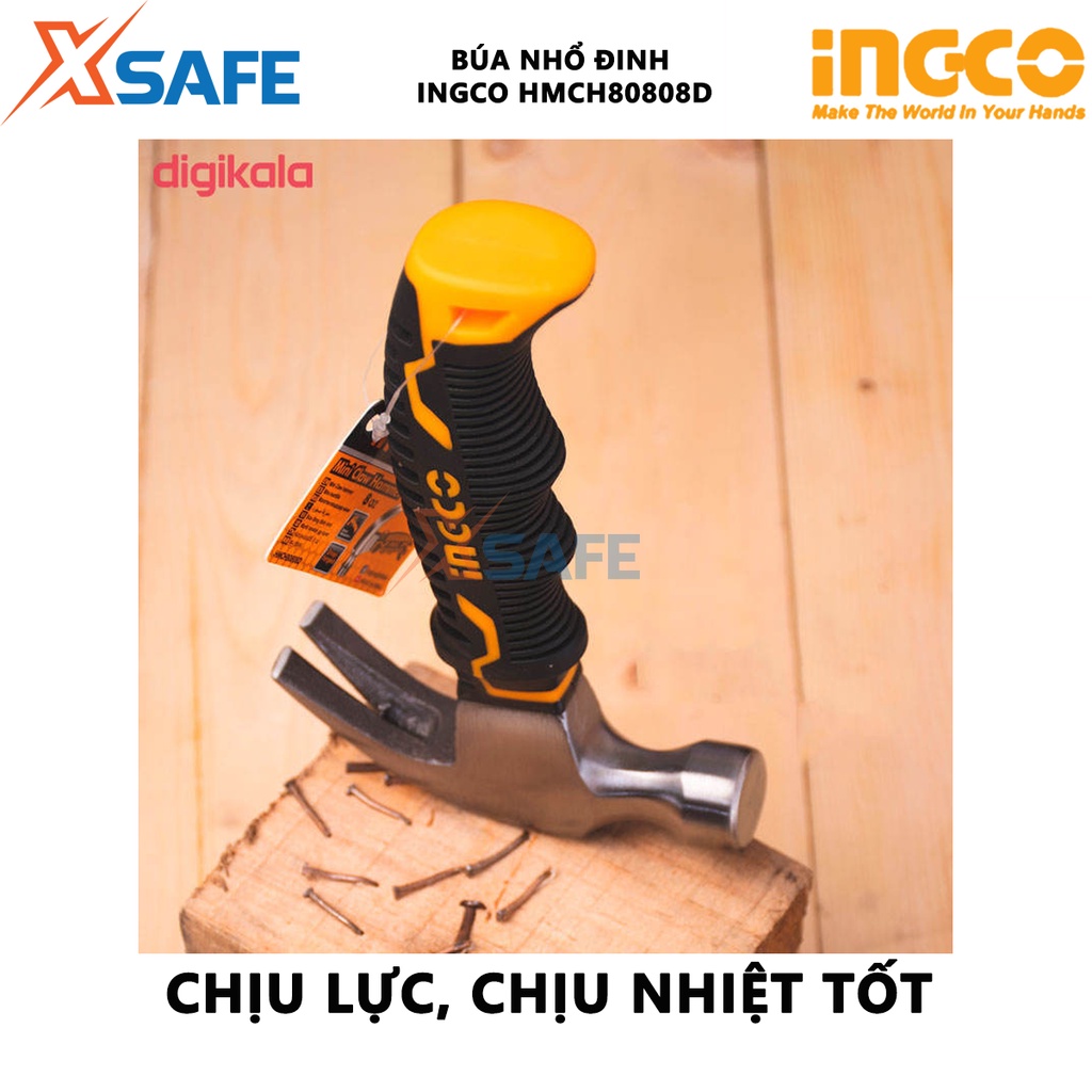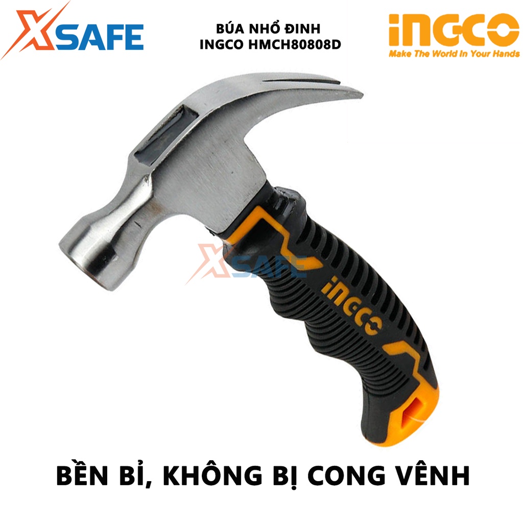 Giới thiệu Búa cầm tay INGCO HMCH80808D Búa nhổ đinh mini thép cacbon, tay cầm 12cm, dùng cho gia đình, nhỏ, gọn - [XSAFE]