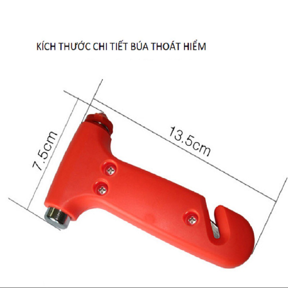 - Bao gồm 2 đầu búa, phần đầu nhọn phá kính, đầu bằng còn lại sử dụng như chiếc búa mini bình thường