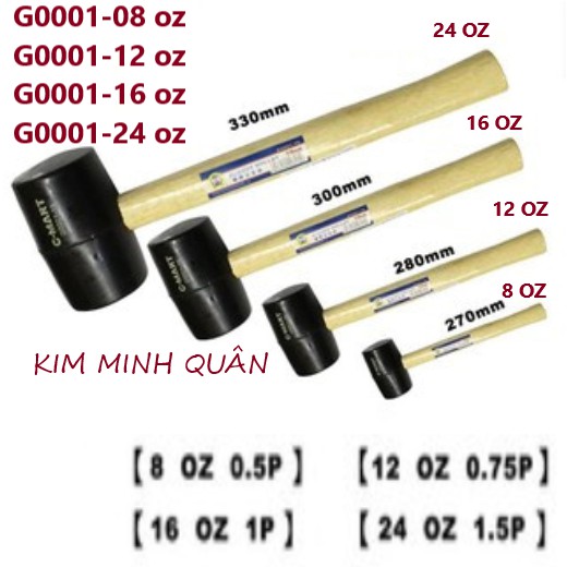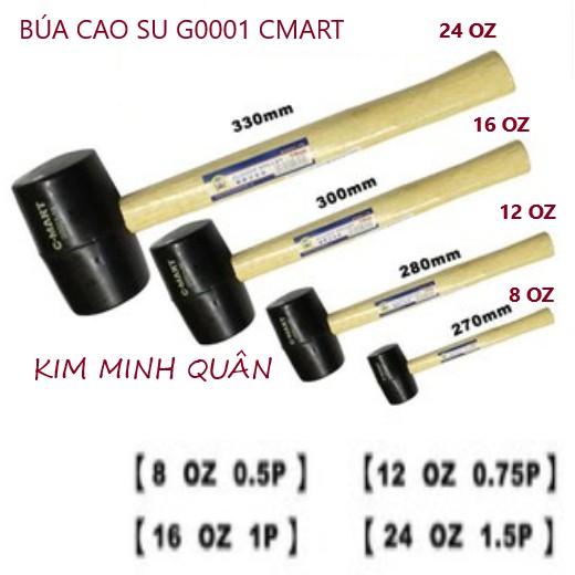 Giới thiệu Búa Cao Su Cán Gỗ 8oz , 12oz , 16oz , 24oz G0001 CMART
