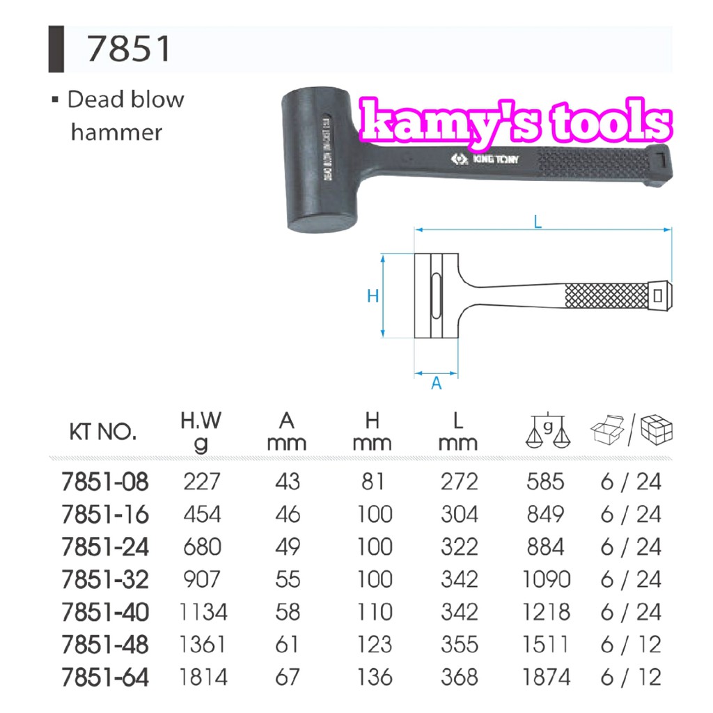 Nhà cửa & Đời sống > Dụng cụ & Thiết bị tiện ích > Dụng cụ > Búa || Búa cao su giảm chấn động Kingtony 227g và 454g Model 7851-08, 7851-16Còn hàng