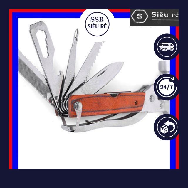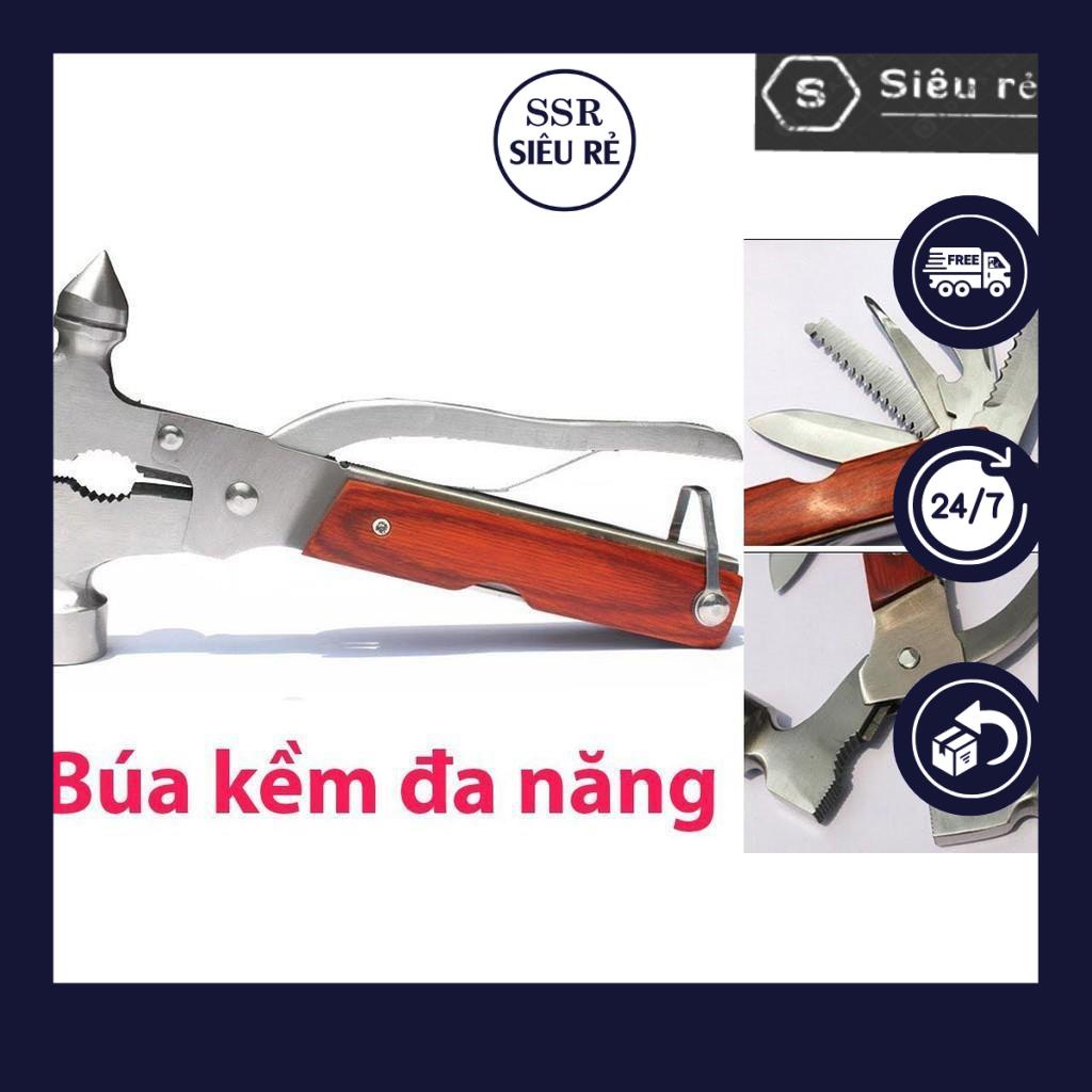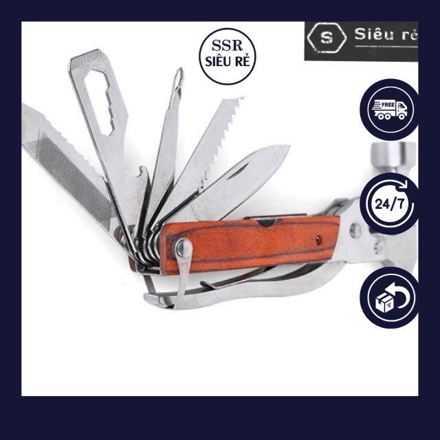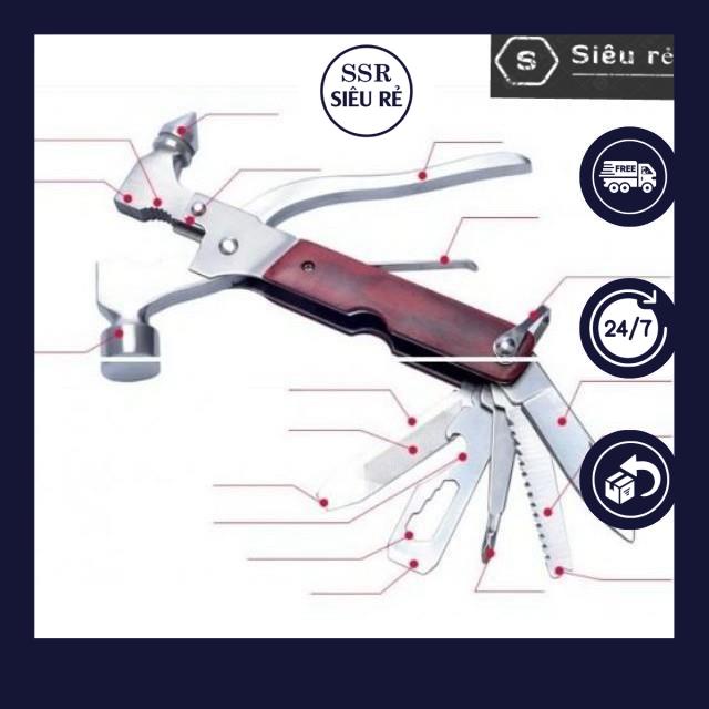 Búa đa năng 7 trong 1 bao gồm đóng, , kìm cắt, cưa cắt, vặn ốc, mở đồ hộp, kìm kẹp, dụng cụ thoát hiểm với kích thước nhỏ gọn tiện lợi khi mang theo đi du lịch, dã ngoại xa nhà.