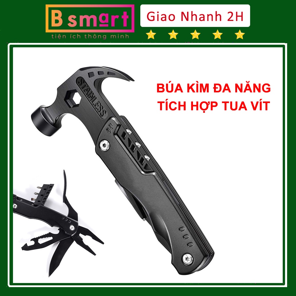 Búa đa năng gấp gọn bằng Thép không gỉ - Búa kiêm kìm, tua vít đa năng