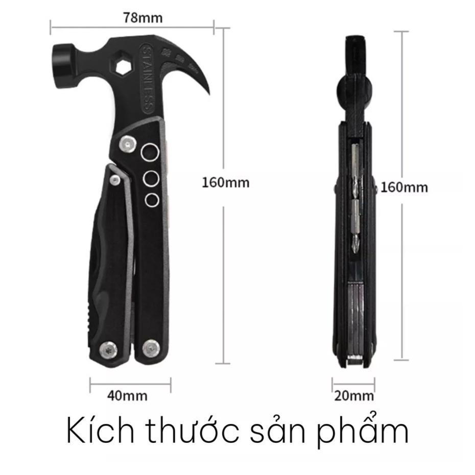 Nhà cửa & Đời sống > Dụng cụ & Thiết bị tiện ích > Dụng cụ > Búa || Búa Đa Năng Gấp Gọn Bằng Thép Không Gỉ, Kìm Kiêm Búa, Tô Vít Đa Năng 14in1 - Dụng cụ Đi Phượt - Cắm Trại PicnicCòn hàng