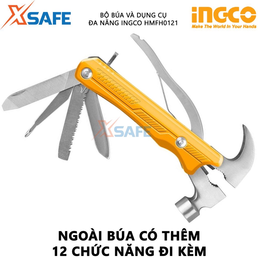 Búa đa năng INGCO HMFH0121 Bộ búa và dụng cụ đa năng 12 trong 1 gồm búa, kềm, dao, cưa, móc khóe, tua vít, giũa, lục gác