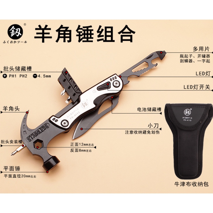 Nhà cửa & Đời sống > Dụng cụ & Thiết bị tiện ích > Dụng cụ > Búa || Búa đa năng thoát hiểm Fukuoka Nhật FO-4113Còn hàng