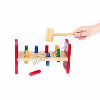 Từng chi tiết được gia công tinh xảo, đẹp mắt. Lối kết hợp màu sắc bắt mắt, ấn tượng, thu hút các bé ngay khi vừa trông thấy. Sản phẩm bao gồm 1 khung với các lỗ hình tròn để chèn những thanh gỗ và một chiếc búa để bé đập những thanh gỗ.