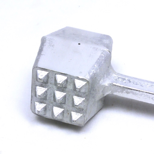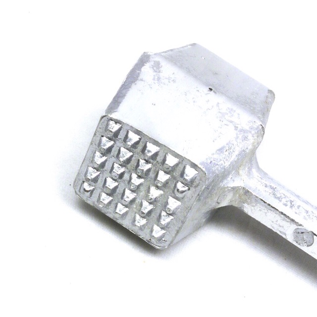 🌸 Búa đập thịt được làm từ chất liệu nhôm đúc, không gỉ, có độ bền cao, đảm bảo không phai nhiễm chất hóa học có hại cho sức khỏe người dùng.🔸 Bạn sẽ hoàn toàn yên tâm khi sử dụng chiếc búa đập thịt này trong lúc chế biến thức ăn. Búa được thiết kế vừa tay cầm, có độ nặng vừa phải để tiếp lực khi bạn dần những miếng thịt dày, lực tác động sẽ theo phần đầu búa dồn trực tiếp xuống miếng thịt. Nhờ vậy, miếng thịt sẽ mềm và dễ tẩm ướp, chế biến.
