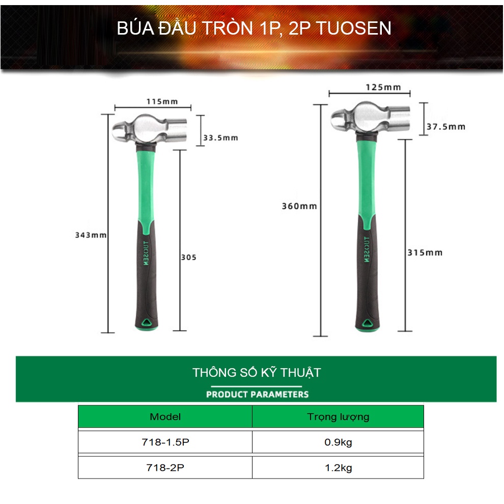Giới thiệu Búa đầu tròn 1P, 2P thép 65# Tuosen