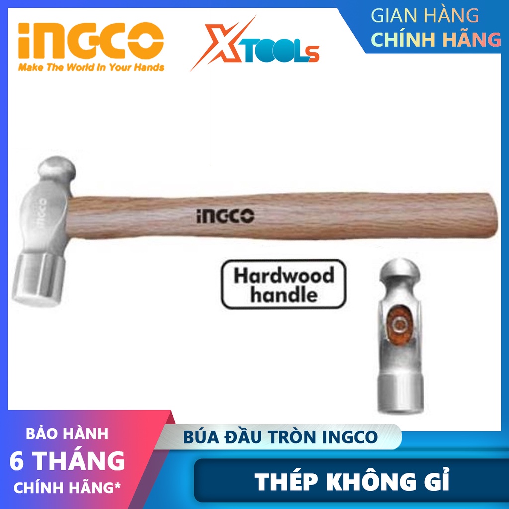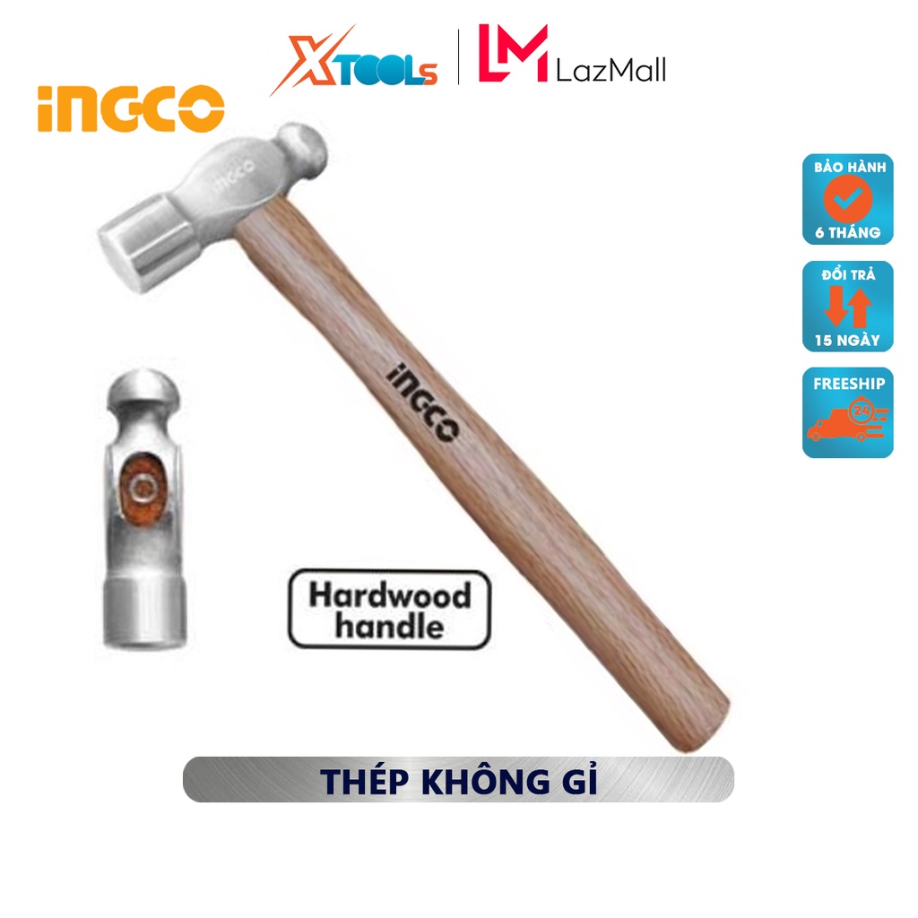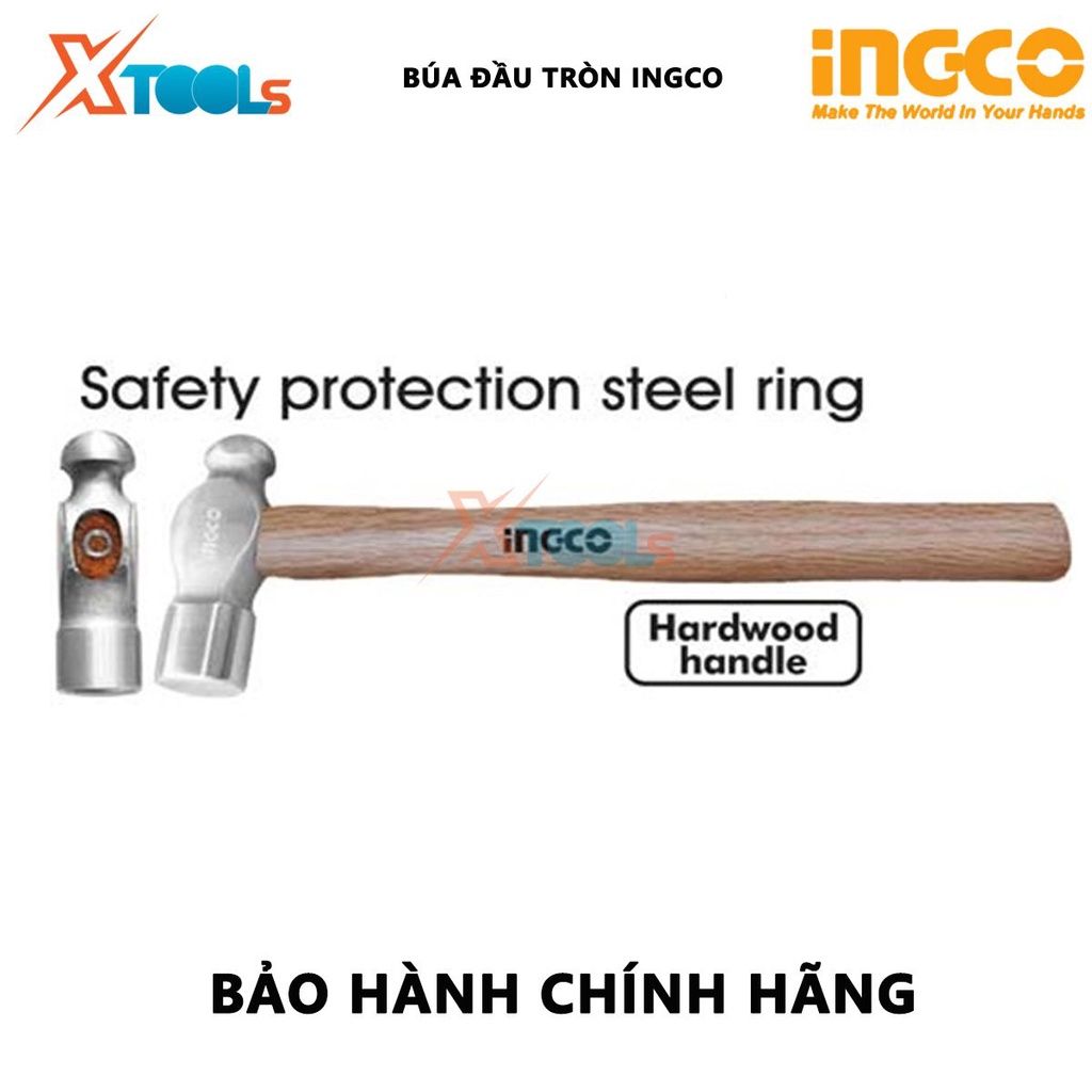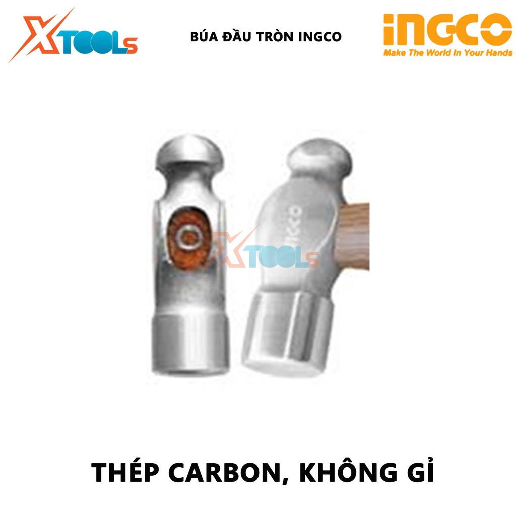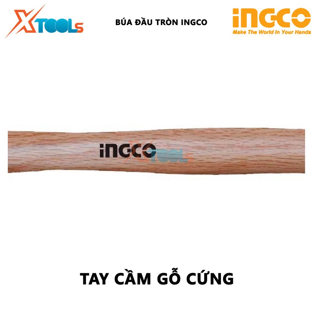 Búa đầu tròn INGCO | búa tay cầm gỗ Trọng lượng: 16oz-24oz / 450g-660g Tay cầm bằng gỗ cứng dùng để gò các dụng cụ bằng