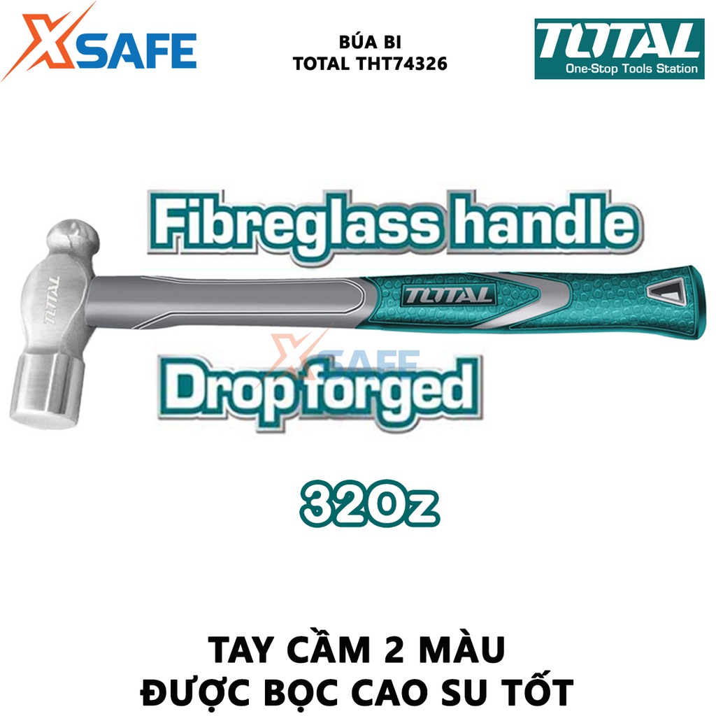 Búa đầu tròn TOTAL THT74326 900g Búa cầm tay đầu bi mini rèn nguyên khối carbon 45#, chịu nhiệt, tay cầm kiểu dáng mảnh