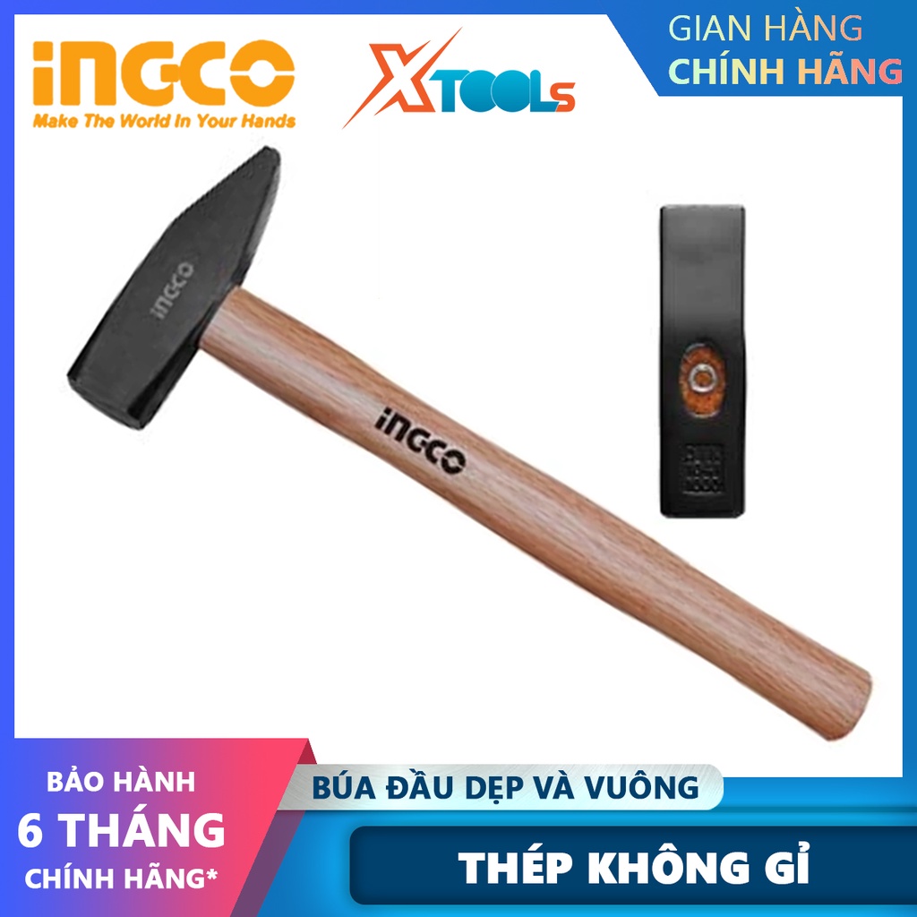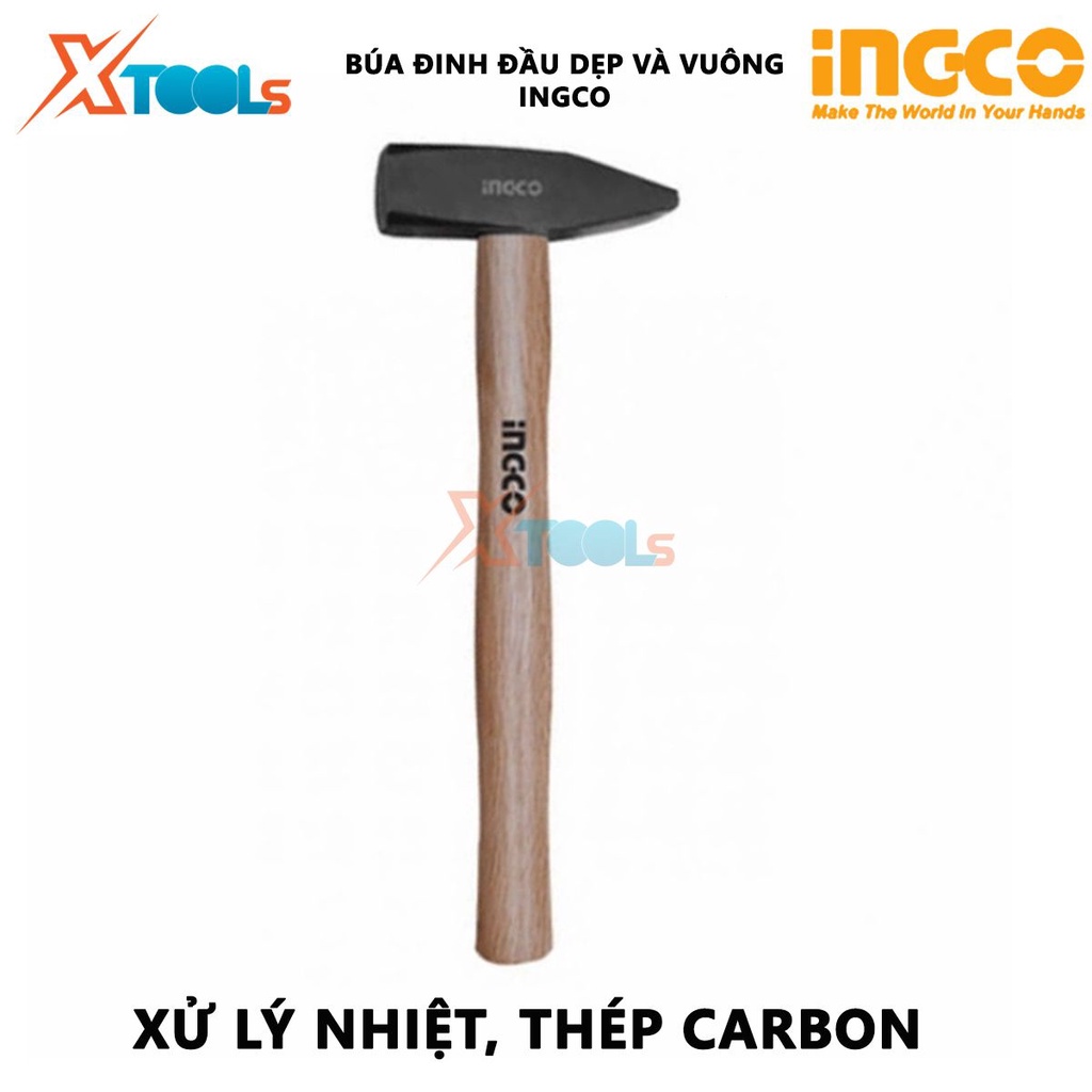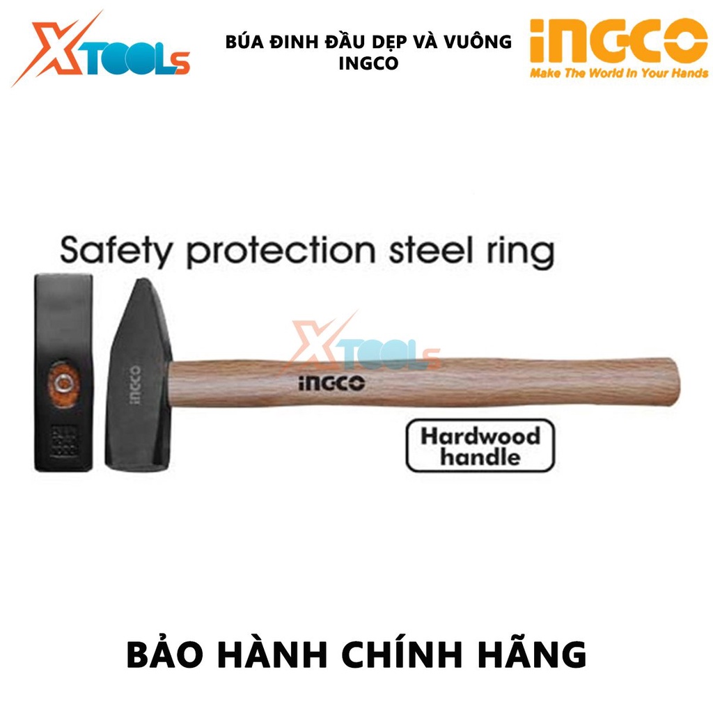 Búa đinh đầu dẹp và vuông cán gỗ INGCO | búa tay cầm gỗ Trọng lượng: 300g-1kg Tay cầm bằng gỗ cứng dùng để gò các dụng c