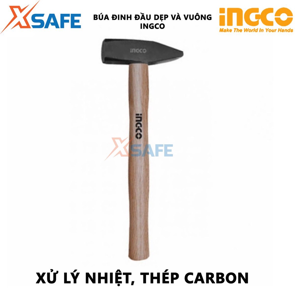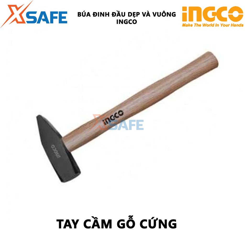 Búa đinh đầu dẹp và vuông cán gỗ INGCO Búa cầm tay trọng lượng 300g-1kg, cán gỗ cứng, đầu búa hợp kim cao cấp rắn chắc