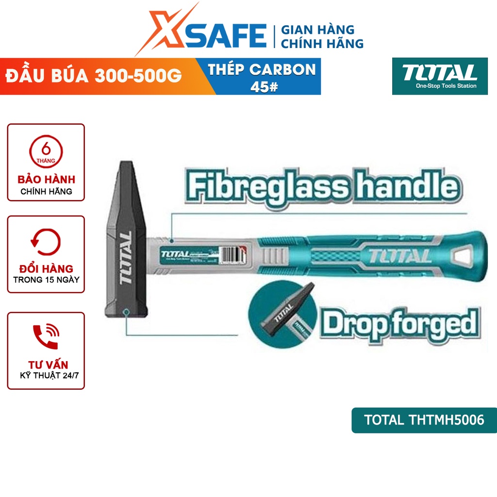 Nhà cửa & Đời sống > Dụng cụ & Thiết bị tiện ích > Dụng cụ > Búa || Búa đinh đầu dẹp và vuông TOTAL trọng lượng 300-500g, thép carbon 45#, chịu nhiệt - Chính hãng - XsafeCòn hàng