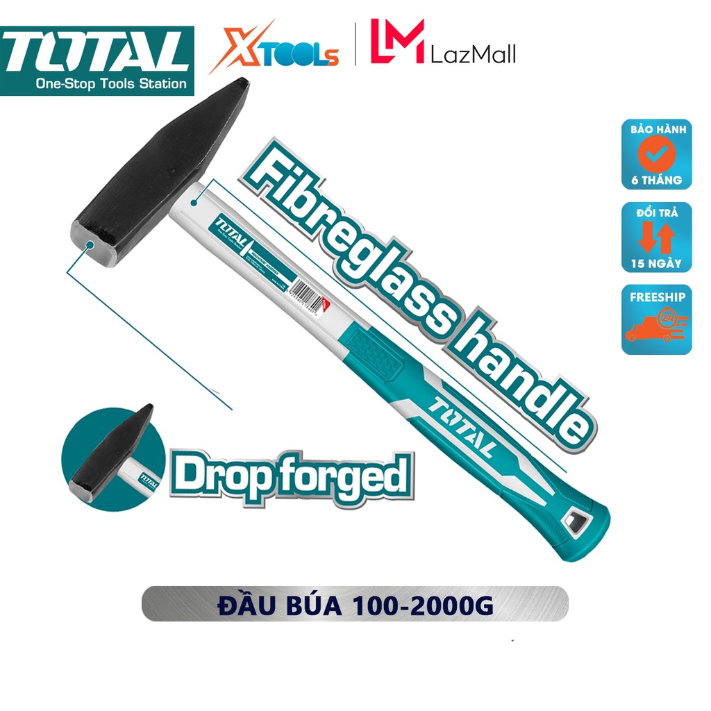 Nhà cửa & Đời sống > Dụng cụ & Thiết bị tiện ích > Dụng cụ > Búa || Búa đinh đầu dẹp & vuông TOTAL | Búa cơ khí Trọng lượng: 100g Thép carbon 45# dùng cho việc nặng như đóng đinh, đập cột…Còn hàng