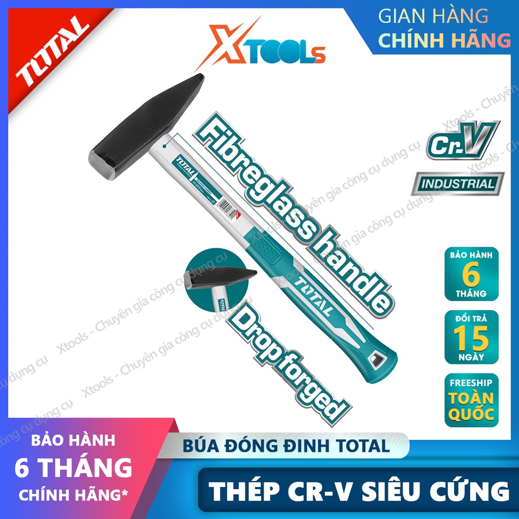 Búa đinh đầu dẹp & vuông TOTAL là dụng cụ được sử dụng trong các việc nặng như đóng đinh, đập cột... tại các công trình xây dựng, nhà máy...là dụng cụ khá nhỏ và nhẹ thuận tiện cho việc di chuyển và sử dụng linh hoạt mà lo bị mõi, tiên ích rất nhiều cho người sử dụng, được làm bằng hợp kim cao cấp, có khả năng chịu được nhiệt, chịu được lực, chịu được các tác động va đập mạnh, có độ bền cao, có khả năng chống rỉ sét khi tiếp xúc với môi trường ẩm ướt, có khả năng làm việc trong các môi trường khắc nhiệt, là dụng không thể thiếu trong mỗi người thợ.