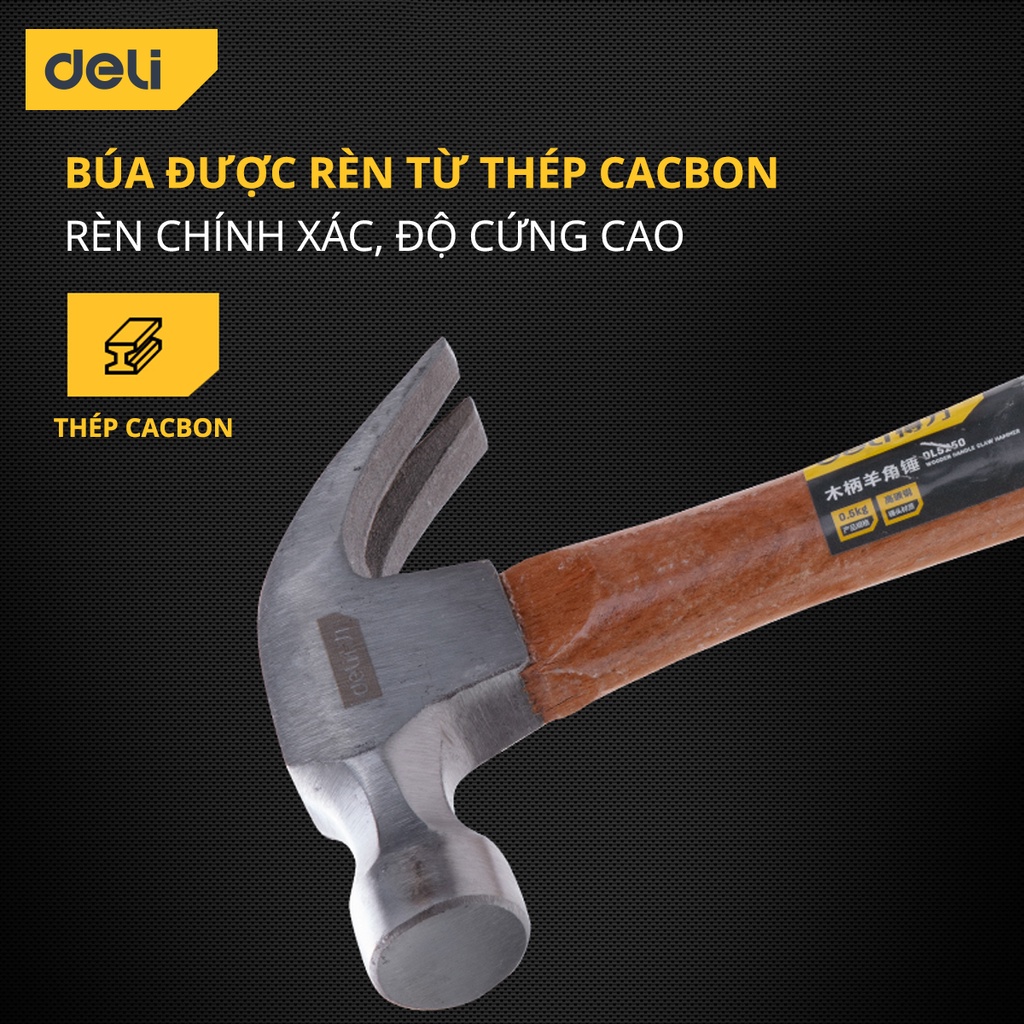 Búa đóng đinh Deli Chất lượng cao - Tay cầm gỗ chắc chắn - Phù hợp sửa chữa vật dụng, nhà cửa - DL5250