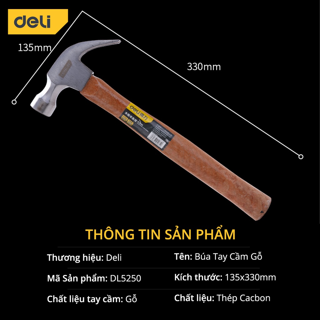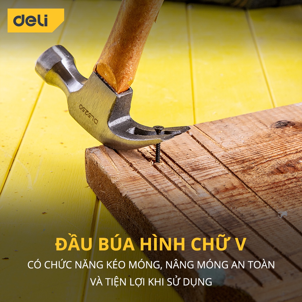 Nhà cửa & Đời sống > Dụng cụ & Thiết bị tiện ích > Dụng cụ > Búa || Búa đóng đinh Deli Chất lượng cao - Tay cầm gỗ chắc chắn - Phù hợp sửa chữa vật dụng, nhà cửa - DL5250Còn hàng