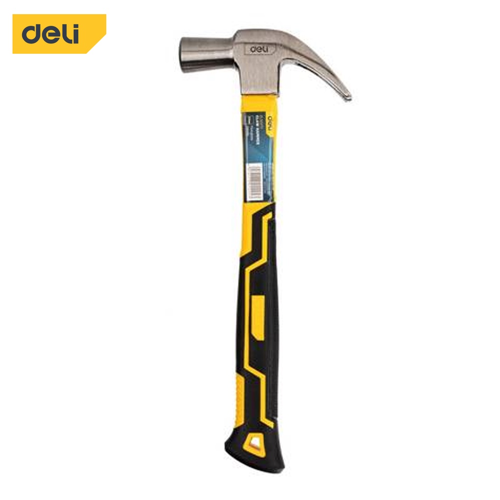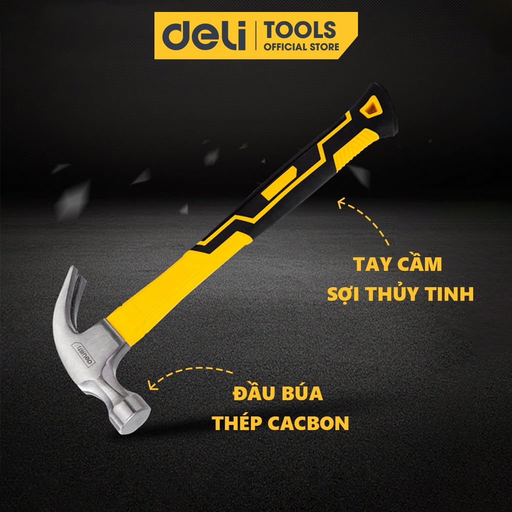 - Búa đóng, nhổ đinh thương hiệu Deli có màu đen-vàng, được thiết kế đầu búa tròn và đầu nhổ đinh uốn cong - sử dụng để kéo đinh (hoặc các chi tiết nhỏ khác).