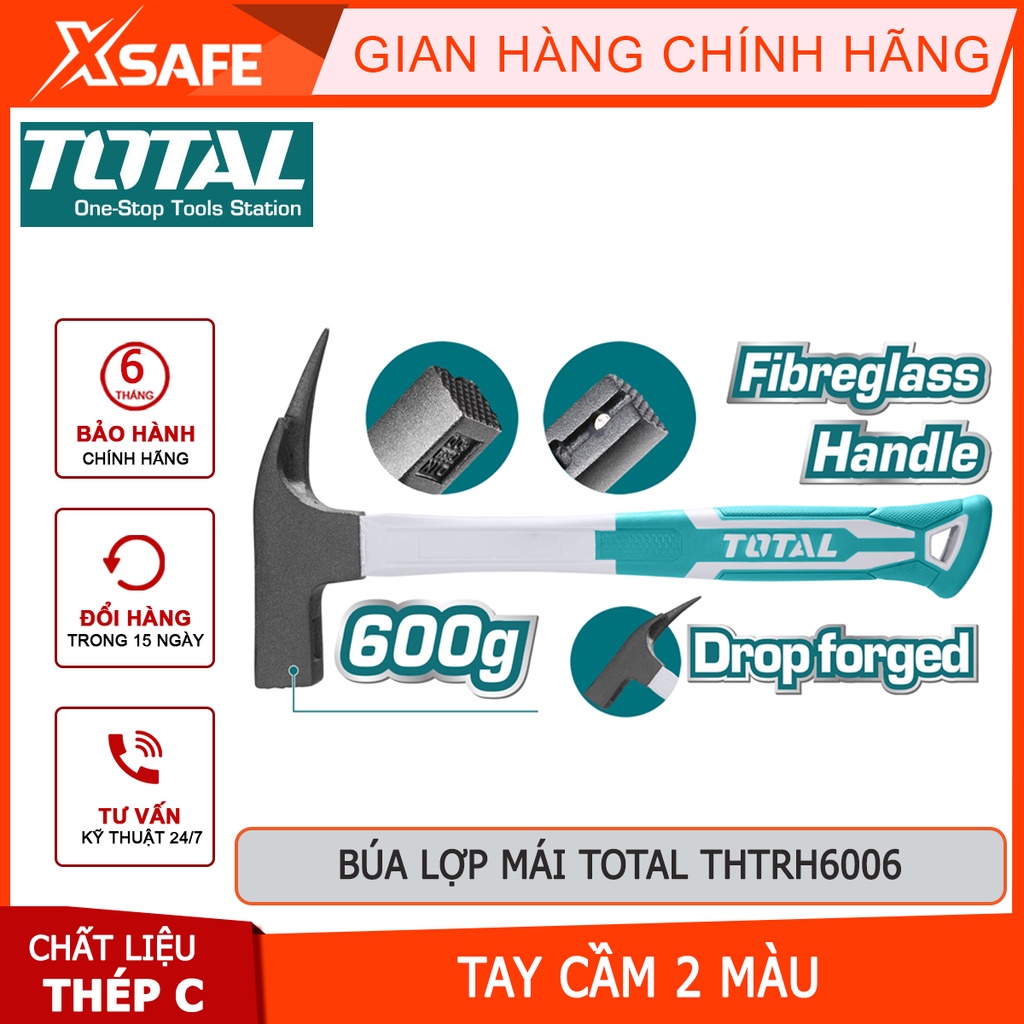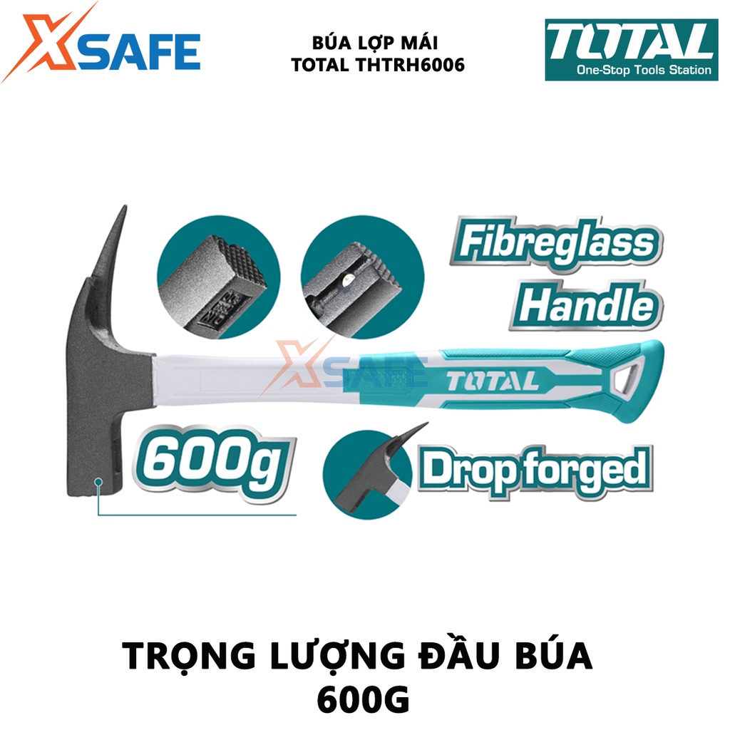 Giới thiệu Búa lợp mái TOTAL THTRH6006 Búa cầm tay trọng lượng 600g, đầu búa rèn nguyên khối, chịu nhiệt, thép carbon 45#