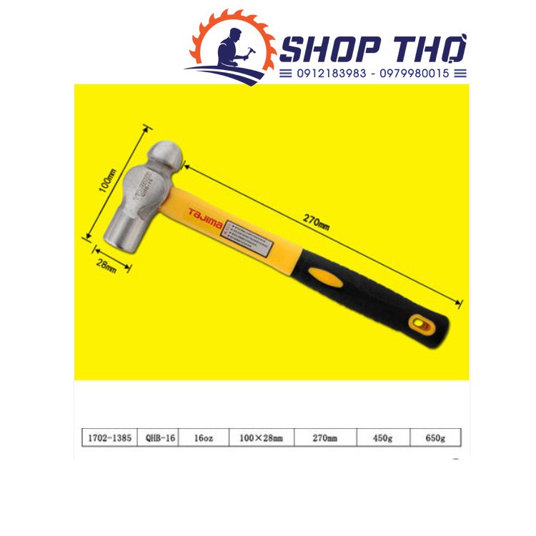 Nhà cửa & Đời sống > Dụng cụ & Thiết bị tiện ích > Dụng cụ > Búa || Búa nhật đầu tròn Tajima QHB8 đến QHB32Còn hàng