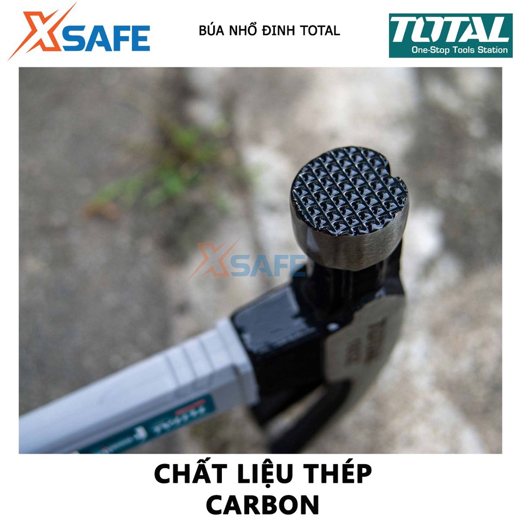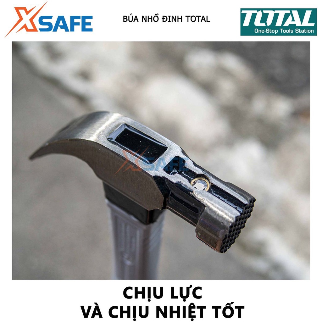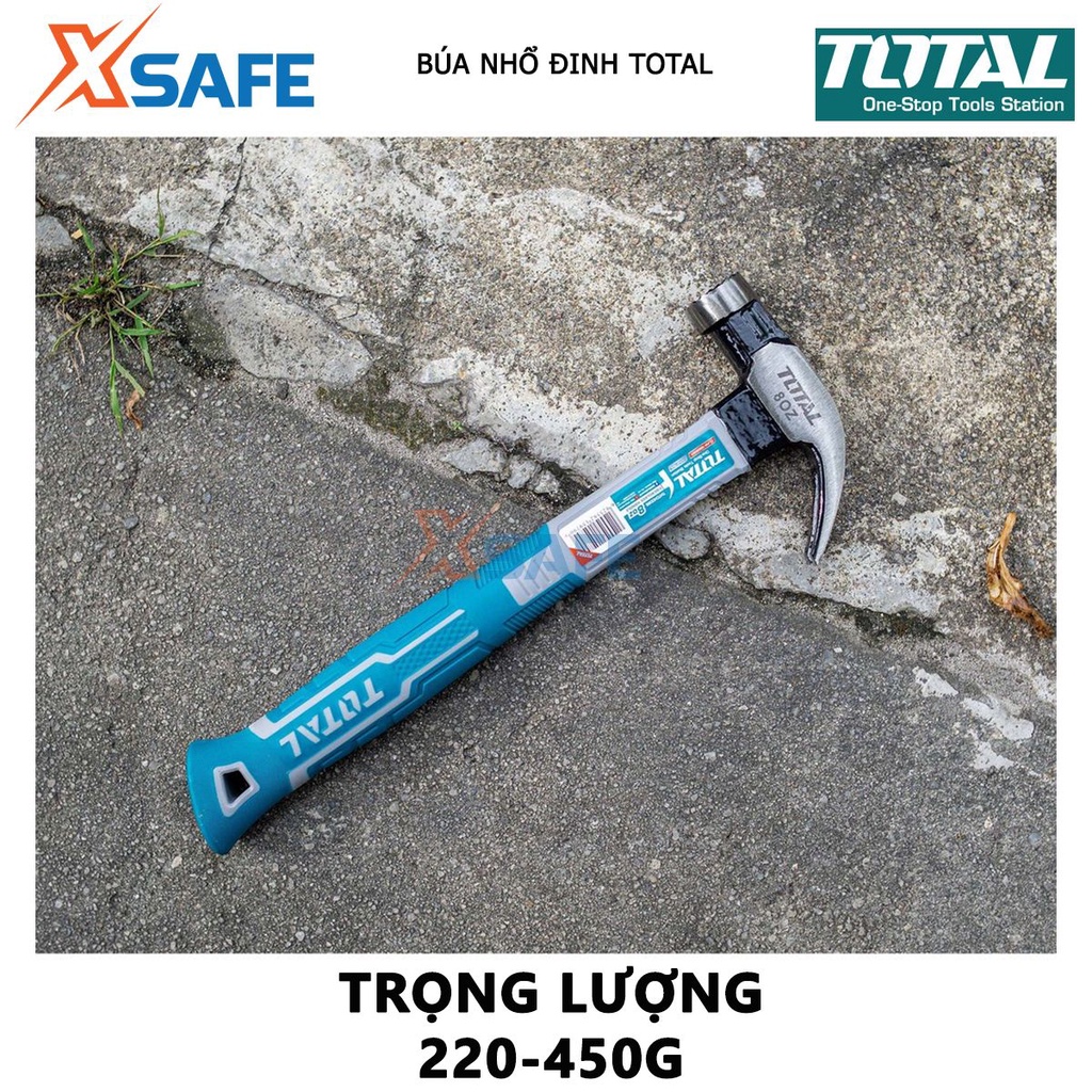 Giới thiệu Búa nhổ đinh cầm tay TOTAL 220g-450g, thép carbon 45 chịu nhiệt, kiểu dáng mảnh, tay cầm chắc chắn - chính hãng