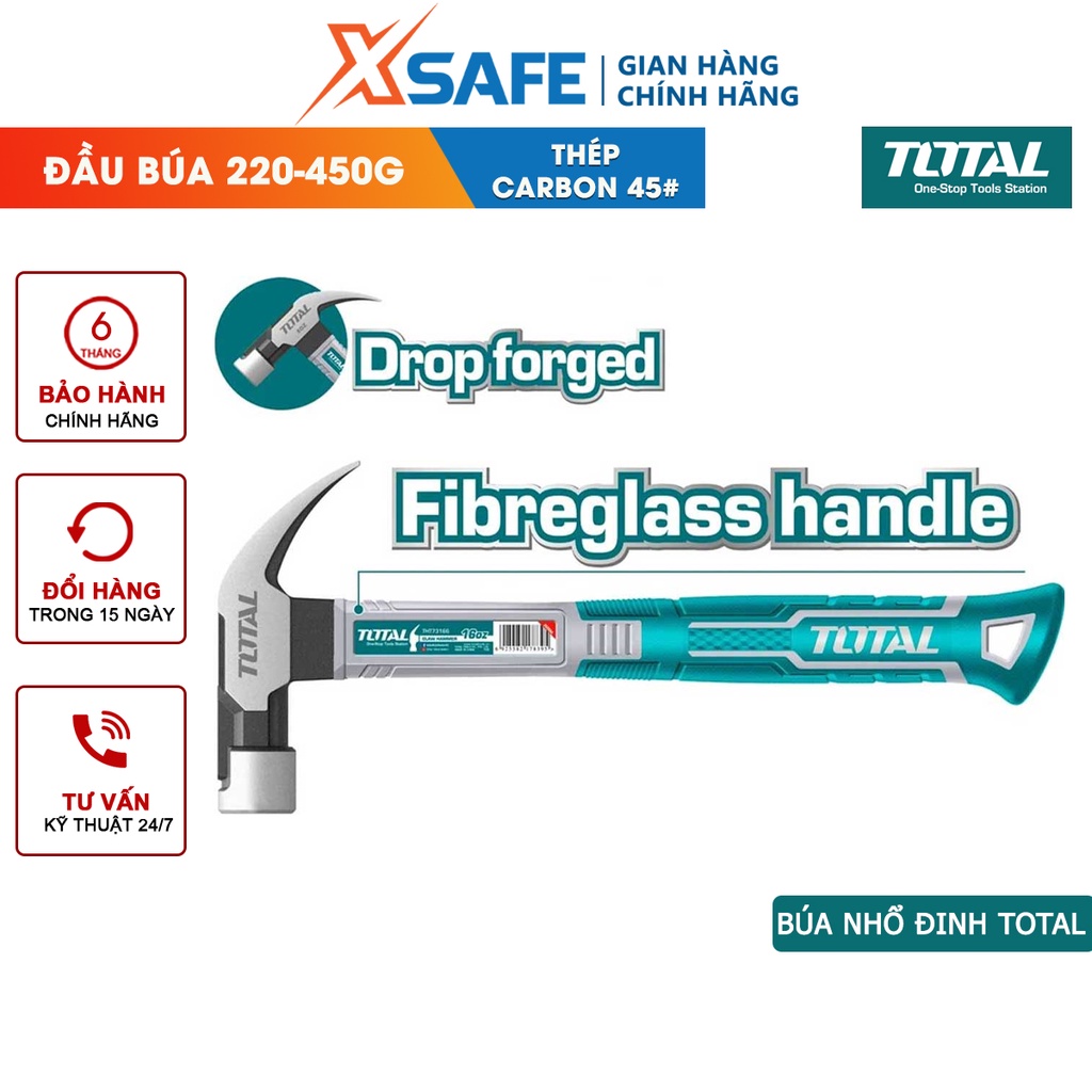 Nhà cửa & Đời sống > Dụng cụ & Thiết bị tiện ích > Dụng cụ > Búa || Búa nhổ đinh cầm tay TOTAL 220g-450g, thép carbon 45 chịu nhiệt, kiểu dáng mảnh, tay cầm chắc chắn - chính hãngCòn hàng