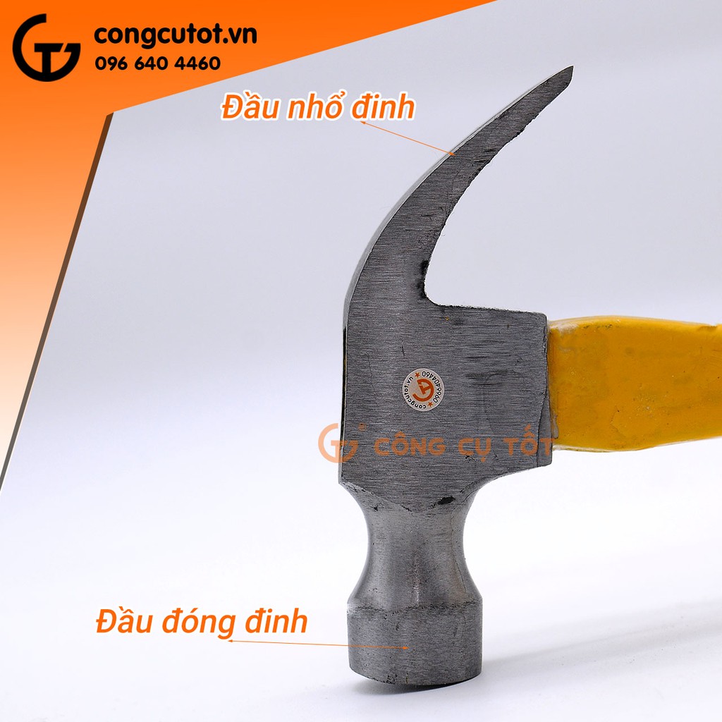 -Đầu búa có 2 phần tiện dụng gồm 1 đầu đóng đinh và 1 đầu nhổ đinh giúp bạn có thể nhổ được nhiều loại đinh có kích cỡ khác nhau.