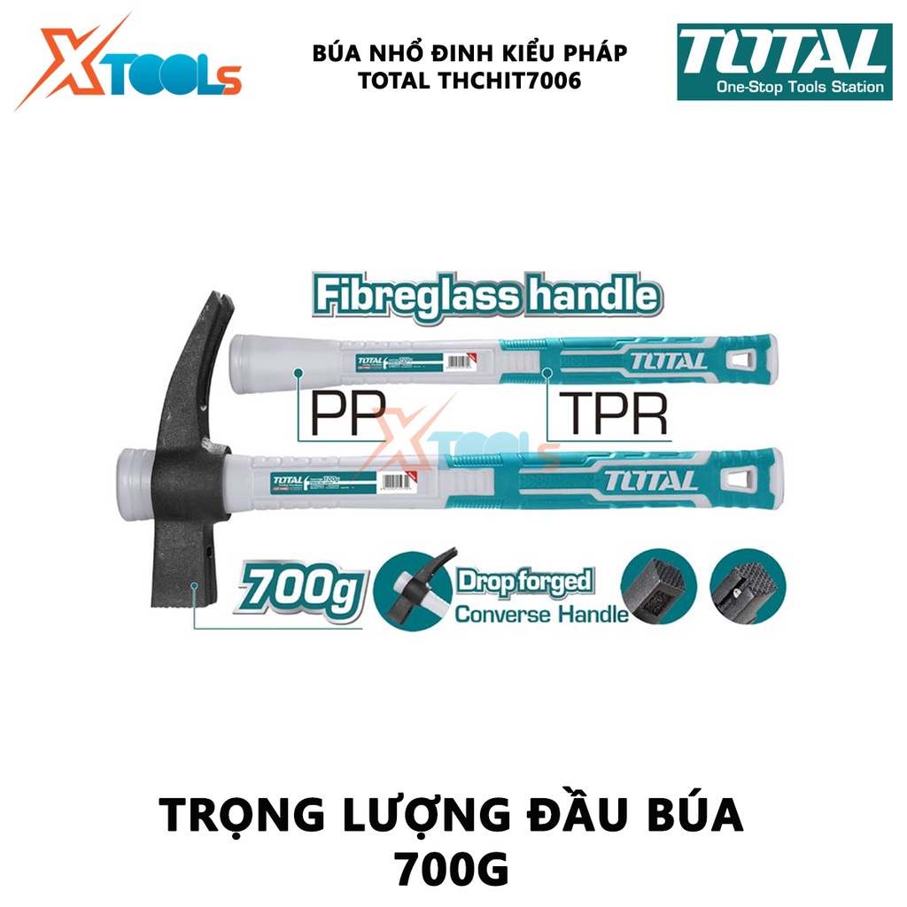 Búa nhổ đinh kiểu pháp TOTAL THCHIT7006 | búa cầm tay trọng lượng: 700g đầu búa được đúc rèn nguyên khối, chịu nhiệt, th