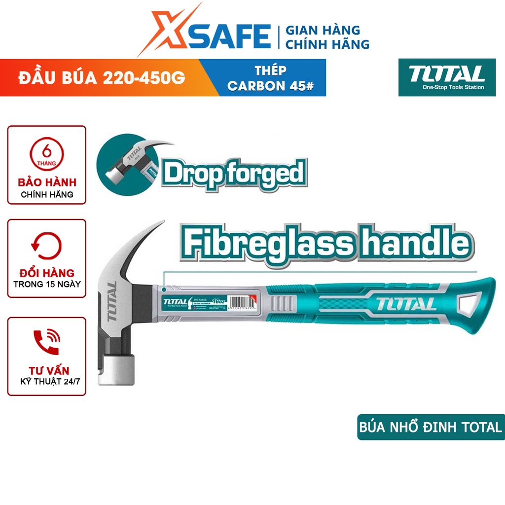Nhà cửa & Đời sống > Dụng cụ & Thiết bị tiện ích > Dụng cụ > Búa || Búa nhổ đinh TOTAL Búa cầm tay trọng lượng 220g- 450g thép carbon 45#, đầu búa được tôi luyện chịu nhiệt - Chính hãngCòn hàng