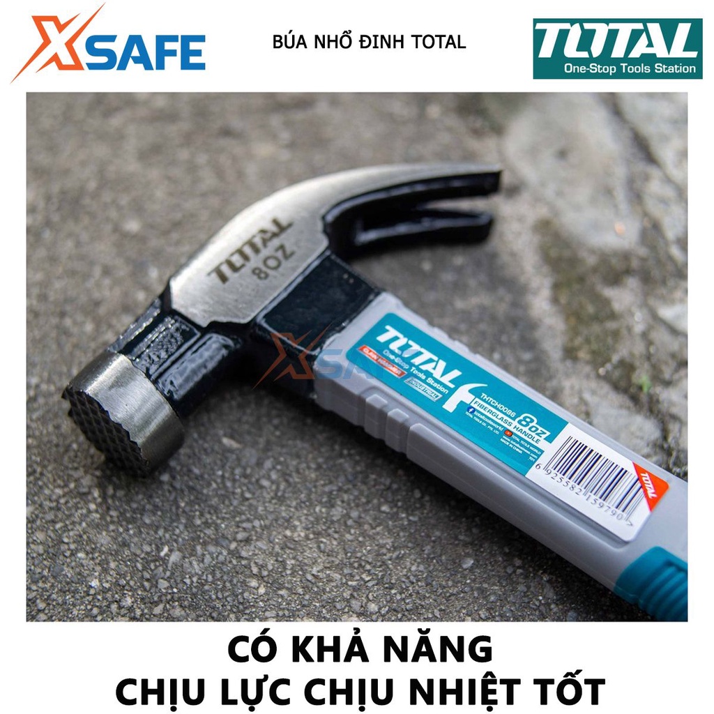 Búa nhổ đinh TOTAL Búa cầm tay trọng lượng 220g- 450g thép carbon 45#, đầu búa được tôi luyện chịu nhiệt - Chính hãng