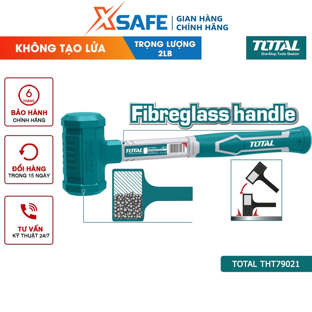 Giới thiệu Búa nhựa đầu tròn đập không nảy TOTAL THT79021 trọng lượng 2LB, bề mặt nhựa không dính, không tạo lửa - [XSAFE]