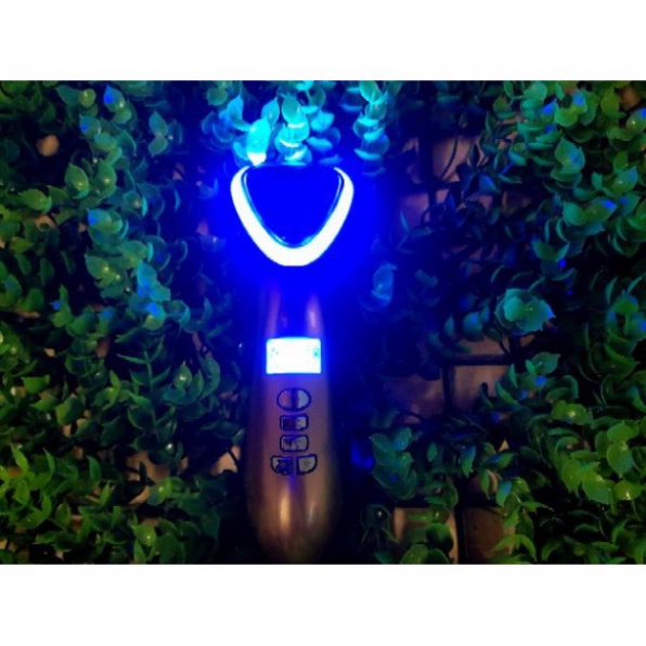 + ánh sáng xanh có bước sóng tần số 414nm tác dụng chính là kháng viêm, tái tạo da, điều trị những vết thâm của mụn, ngoài ra có thể kết hợp với tinh chất để phục hồi làn da.