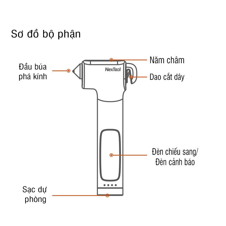 Nhà cửa & Đời sống > Dụng cụ & Thiết bị tiện ích > Dụng cụ > Búa || Búa phá kính đa năng Nextool NE0140 5 trong 1Còn hàng