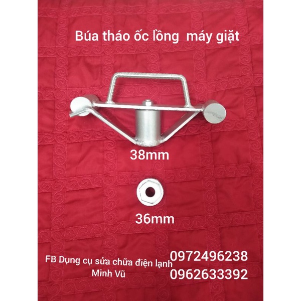Bộ sản phẩm bao gồm1 bộ búa tháo ốc lồng 2 cỡ 36 và 38 mm + 1 bộ cảo mâm máy giặt