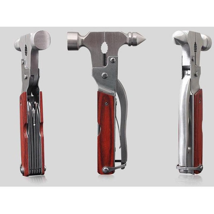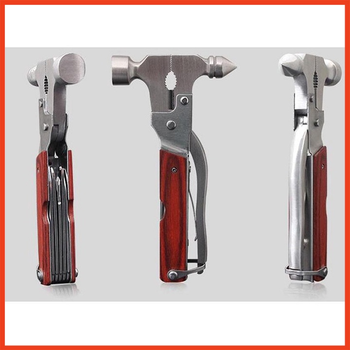 Thiết kế thông minh: Nhìn sản phẩm nhỏ bé này, bạn sẽ nghĩ đây đơn thuần chỉ là một chiếc búa thôi đúng không? Nhưng không chỉ có như vậy đâu. Đây là một bộ sản phẩm sửa chữa đa năng gồm rất nhiều vật dụng như: búa, kìm,cưa nhỏ, dao, tuốc nơ vít...được thiết kế vô cùng độc đáo trong cùng 1 sản phẩm. Chỉ cần mở chiếc búa ra, bạn sẽ cực kì bất ngờ bởi sự thông minh và tinh tế của người thiết kế ra nó. Đó chính là lý do bạn nên chọn bộ sản phẩm này cho mỗi cuộc hành trình của mình, vừa nhẹ, vừa tiết kiệm không gian lại cực kì hữu ích. Hoặc, việc sử dụng bộ búa kìm đa năng này trong nhà hàng ngày sẽ giúp bạn sửa chữa kịp thời những đồ gia dụng mà không còn phải dùng đến những bộ đồ chuyên dụng hay nhờ thợ sửa nữa. Đa chức năng: Búa đa năng 7 trong 1 tuy có kích thước nhỏ gọn nhưng tích hợp đến 7 công dụng tiện ích bao gồm: đầu búa dùng để đóng hoặc nạy đinh ốc, kiềm, lưỡi dao, tua vít 4 cạnh, mở nắp chai, cưa sắt và cưa gỗ, nó sẽ là vật dụng hữu ích cho gia đình và cả những chuyến du lịch, dã ngoại xa nhà.