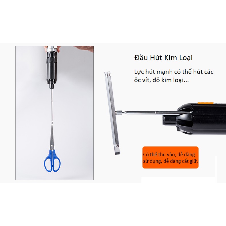 • 01 đầu hút kim loại lực hút mạnh có thể hút các ốc vít, đồ kim loại, dễ dàng sử dụng