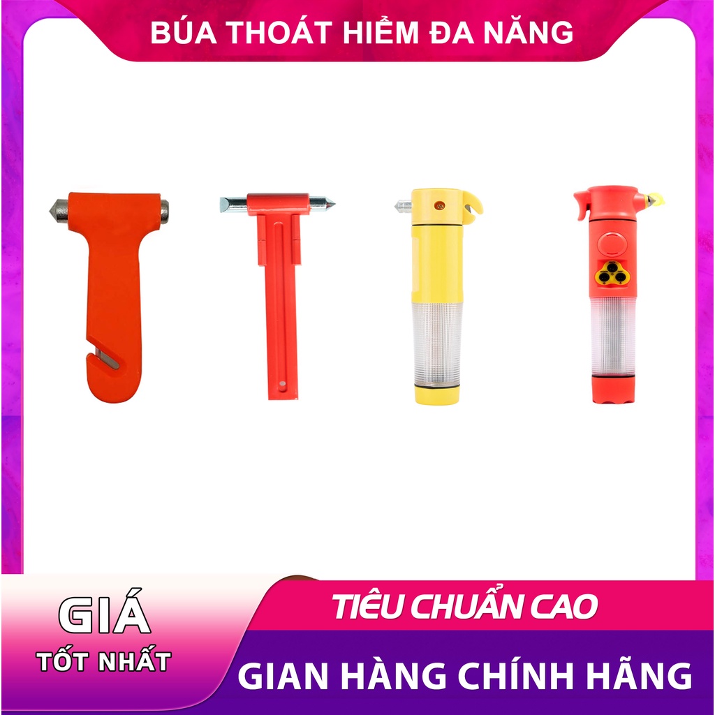 Búa thoát hiểm dùng trong cứu hộ, phá kính, thoát hiểm gồm loại có còi, đèn cảnh báo, đèn pin chiếu sáng