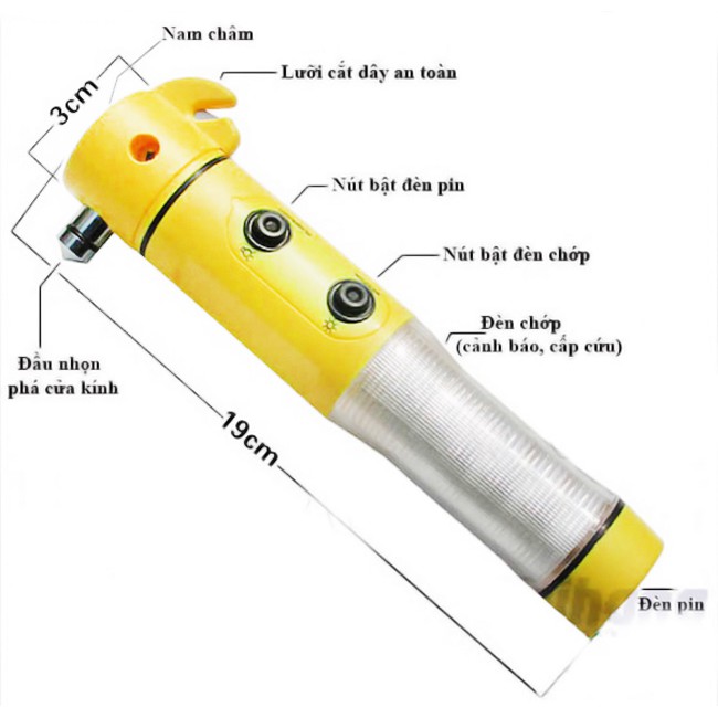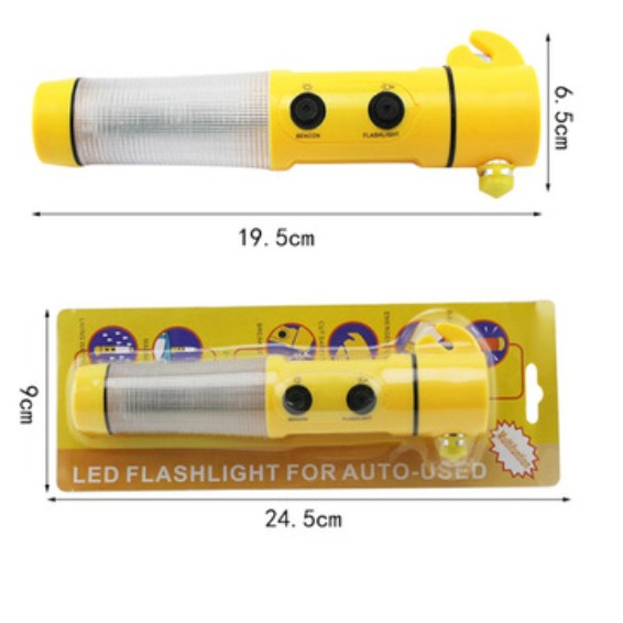 Búa thoát hiểm oto có đèn pin đa chức năng 4in1
